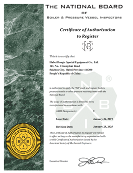 公司先后獲得湖北省高新技術(shù)企業(yè)、多次被湖北省國家稅務(wù)局、湖北省工商局、隨州市工商局授予"A級納稅人”、”守合同重信用企業(yè)” 等光榮稱號, 被中國農(nóng)業(yè)銀行湖北分行 授信為"AAA" 等級企業(yè)。公司分別通過了國家"CCC" 強(qiáng)制性認(rèn)證和IS09001: 2000質(zhì) 量體系認(rèn)證,獲得國家質(zhì)量監(jiān)督檢驗檢疫總局頒發(fā)的危險化學(xué)品包裝物、容器《全國工業(yè) 產(chǎn)品生產(chǎn)許可證》,取得湖北省安全生產(chǎn)委員會頒發(fā)的《危險化學(xué)品包裝物容器定點生產(chǎn)企業(yè)》證書,擁有國家A2、C2、 C3壓力容器制造許可資質(zhì)AMS制造證和中國船級社廠 制造許可資質(zhì)等多項專業(yè)資質(zhì)及國家產(chǎn)品專利。